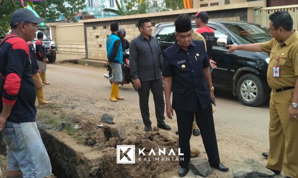 Bupati Banjar H Khalilurahman turun langsung memantau proses pengerjaan perbaikan drainase di jalan Pendidikan, Kelurahan Sekumpul, Kecamatan Martapura, Senin (12/3) siang.
