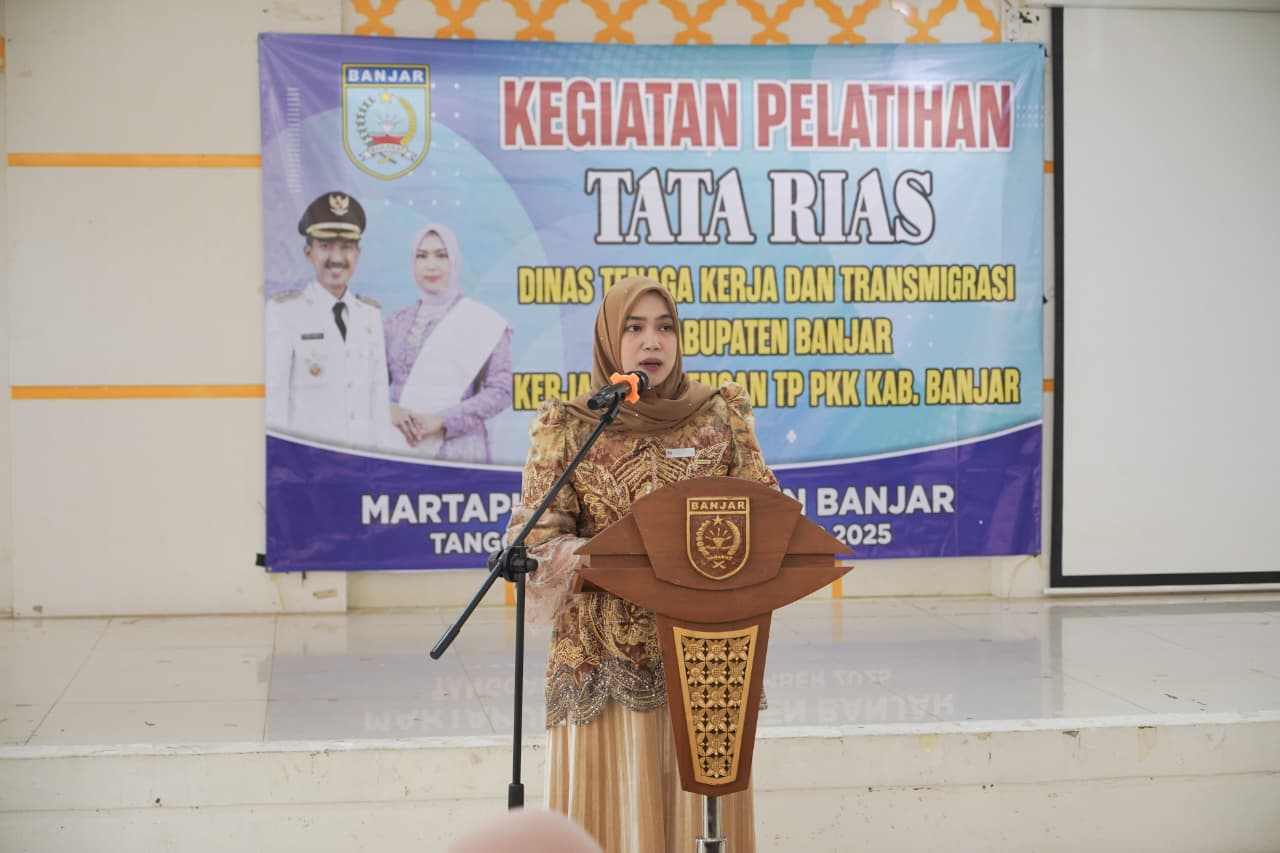 Ketua TP PKK Kabupaten Banjar, Hj Nurgita Tiyas, menyampaikan bahwa pelatihan tata rias diharapkan mampu membuka wawasan dan keterampilan peserta sehingga bisa menjadi bekal untuk berusaha maupun menambah penghasilan keluarga.