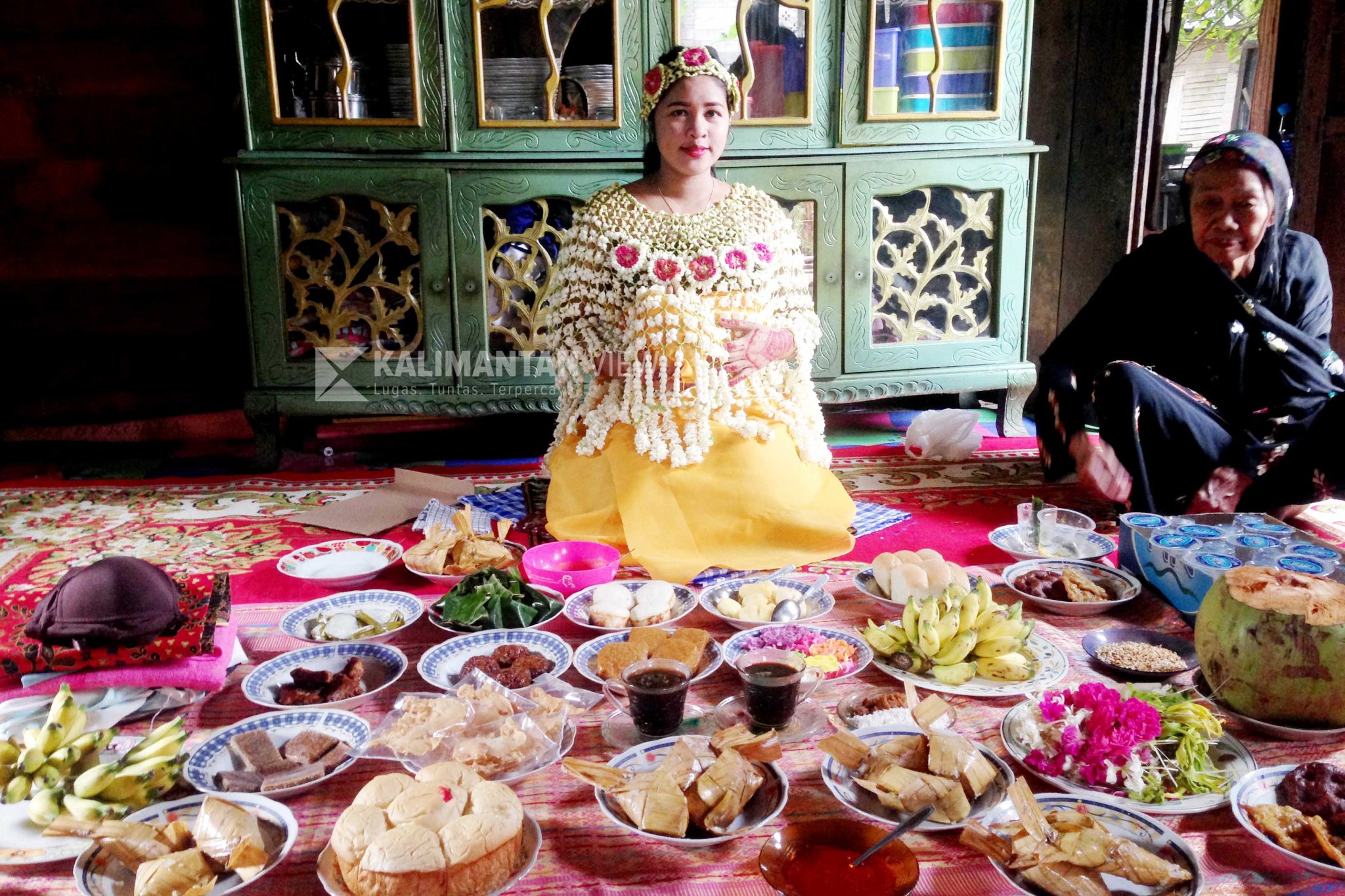 “Makanan yang harus disediakan di antaranya ketupat, nasi lamak, kakoleh habang, kakoleh putih, bubur habang, bubur putih, cucur, lamang, nasi kuning intalu, cincin, nyiur anum. Itu wajib sudah seasalan kada tatinggal, nyiur anum tu sebagai pambarasihnya. Itu ada dari asal urang bahari dan wajib lengkap,†jelas Saniah.