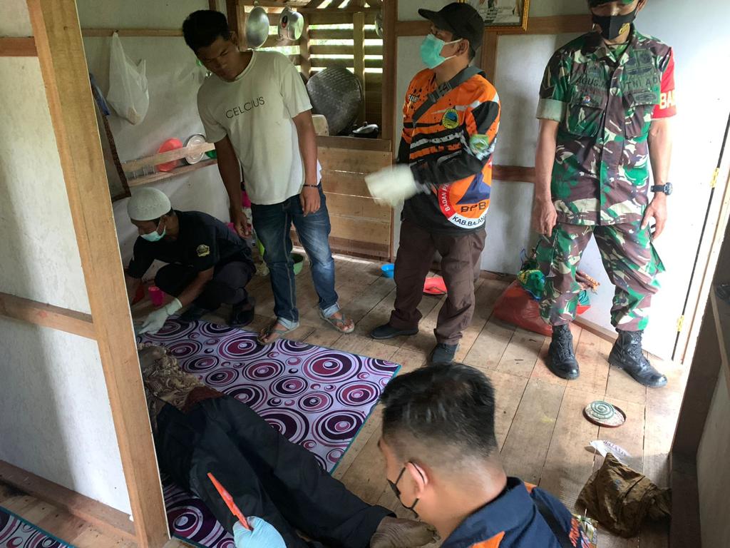 Penemuan mayat seorang laki-laki di sebuah rumah di perkebunan yang jauh dari permukiman warga Desa Tabing Liring, Sabtu (14/5/2022) pagi. Foto: polsekamuntaiutara
