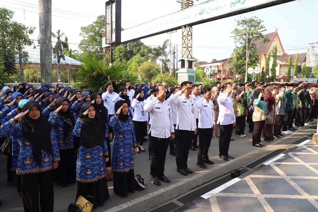 Upacara dihadiri para pejabat SKPD, pelajar, mahasiswa serta unsur Forkompimda di Kabupaten HSU. Pj Bupati HSU Zakly Asswan bertindak sebagai inspektur upacara.