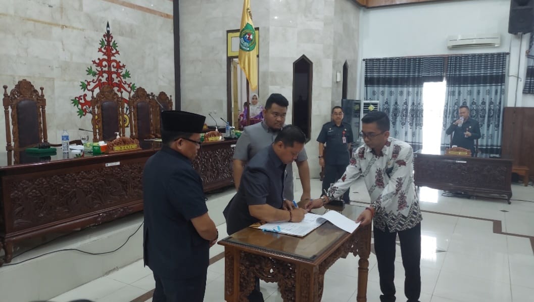 Kesepakatan atas KUA PPAS 2024 ditandai dengan penandatanganan nota kesepakatan oleh Pj Bupati Kapuas bersama Pimpinan DPRD Kapuas, pada rapat paripurna yang digelar, Kamis (2/11/2023) siang.