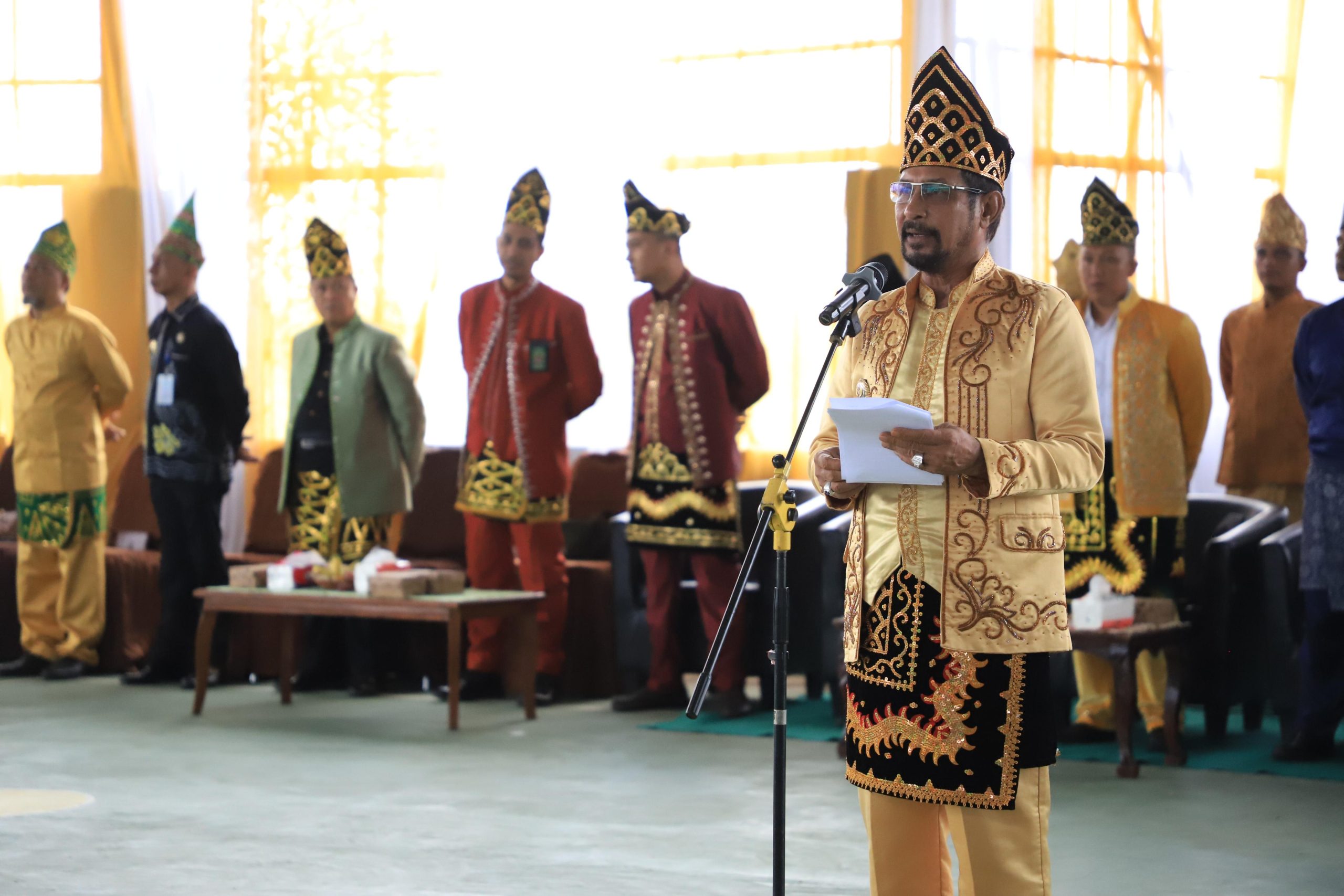 Penjabat (Pj) Bupati HSU Zakly Asswan memimpin upacara peringatan Hardiknas dihadiri pejabat di lingkungan Pemkab HSU, Forkopimda, instansi vertikal, para guru, pelajar, dan mahasiswa.