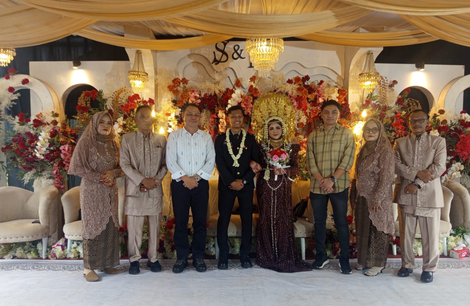 Kedatangan Pj Sekda disambut baik dan meriah oleh tuan rumah dan tamu undangan lainnya dan langsung menuju pelaminan serta memberikan selamat kepada kedua mempelai.
