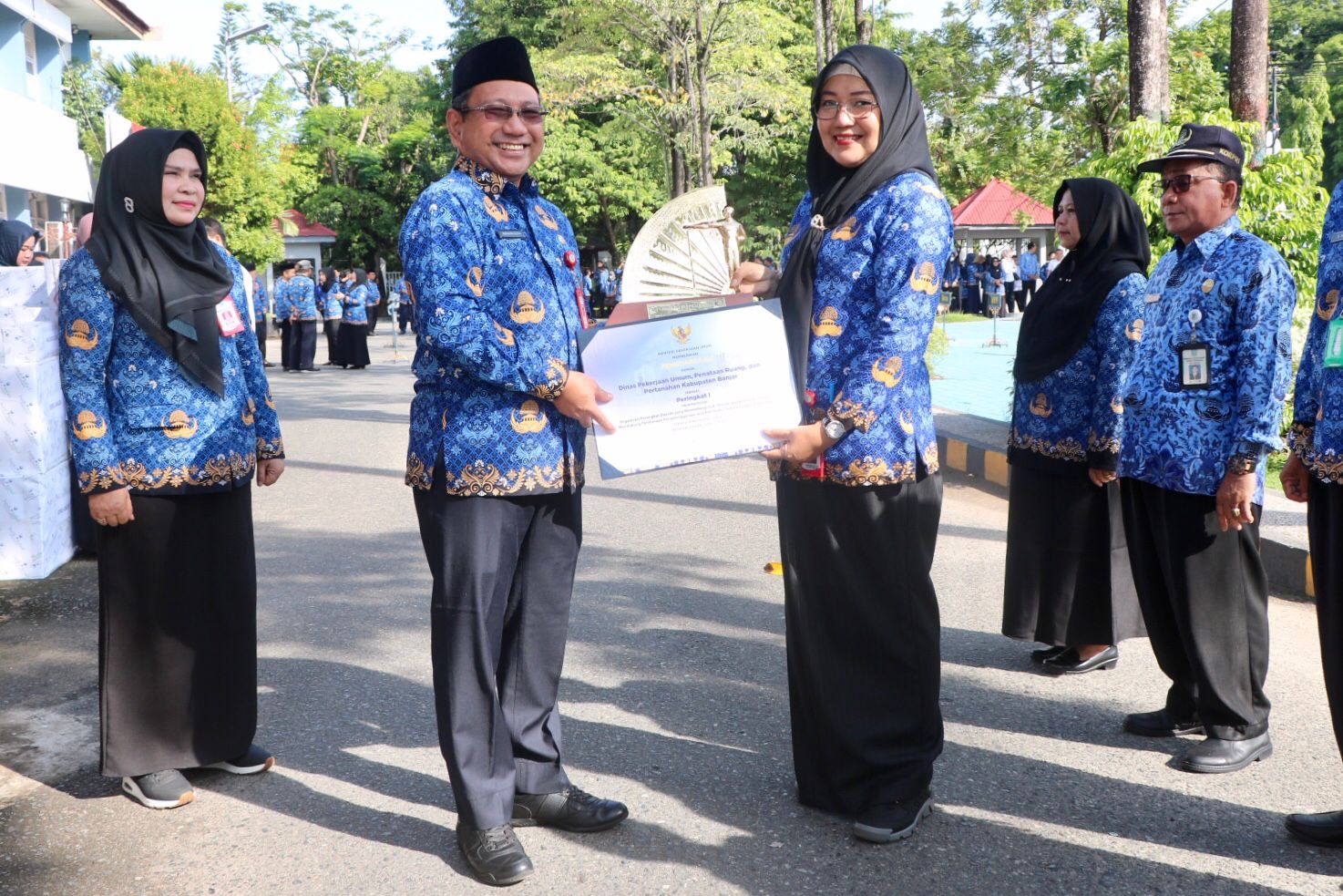 Prestasi yang diraih Dinas PUPRP Kabupaten Banjar itu disampaikan pada Apel Hari Kesadaran Nasional lingkup Pemerintah Kabupaten Banjar digelar dengan petugas dari Badan Kepegaiwaian dan Pengembangan Sumber Daya Manusia (BKPSDM), di halaman Kantor Bupati Banjar Martapura, Senin (18/11/2024) pagi.