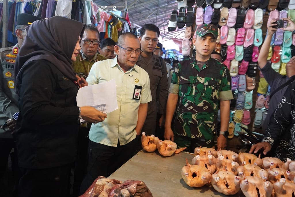 Hadir mendampingi sidak Kepala DKPP Banjar Sipliansyah, Direktur Perumda Pasar Bauntung Batuah Rusdiansyah serta sejumlah stake holder terkait. (kanalkalimantan.com/dkispbanjar/kk)