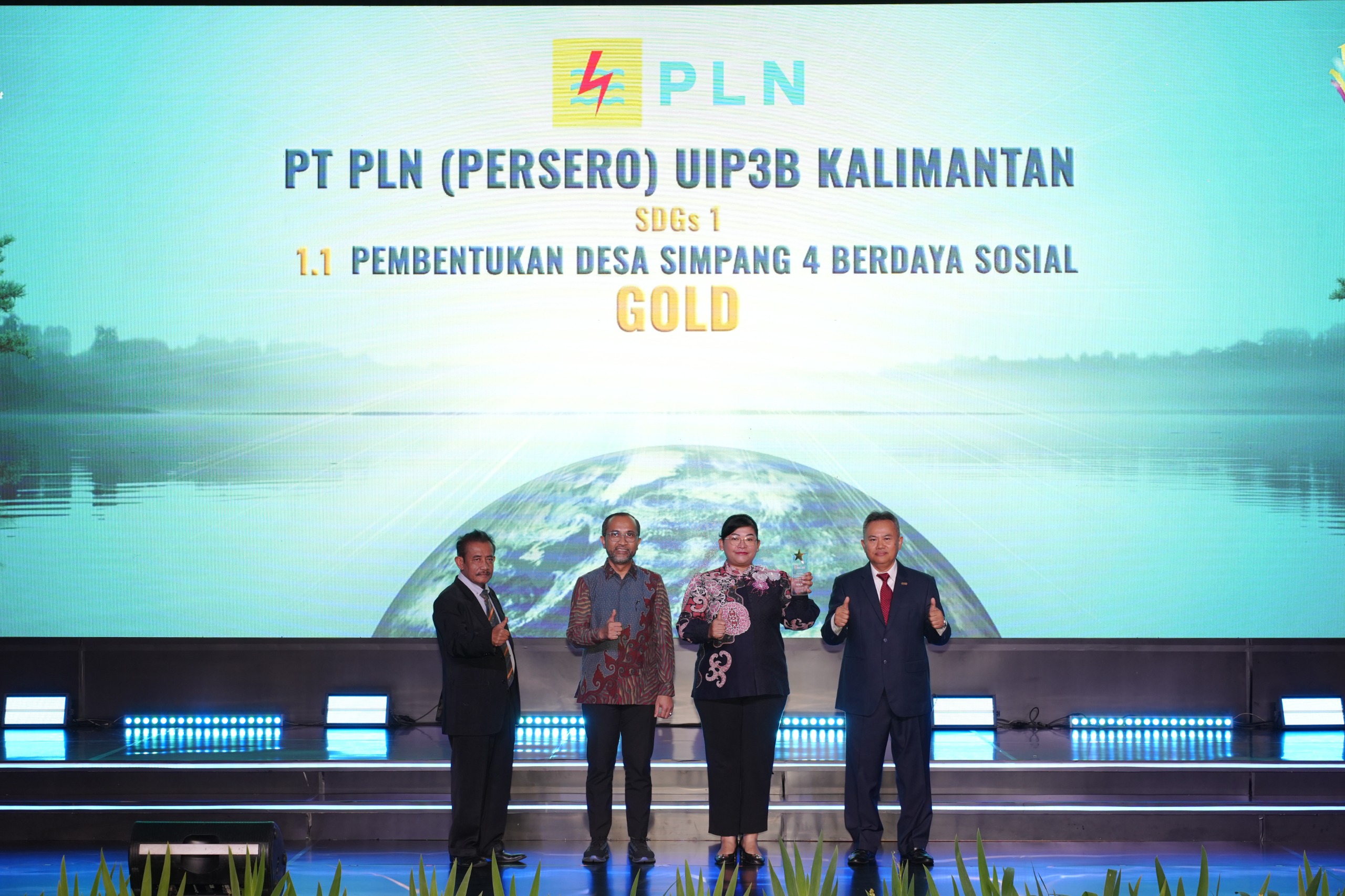 Melalui program Pembentukan Desa Simpang Empat Berdaya Sosial, PT PLN (Persero) UIP3B Kalimantan berhasil mendapatkan penghargaan Gold kategori Sustainabilty and Development Goals (SDGs) 1.1 Social Pillar dalam ajang ISDA-2024 Award di Jakarta. Foto: pln
