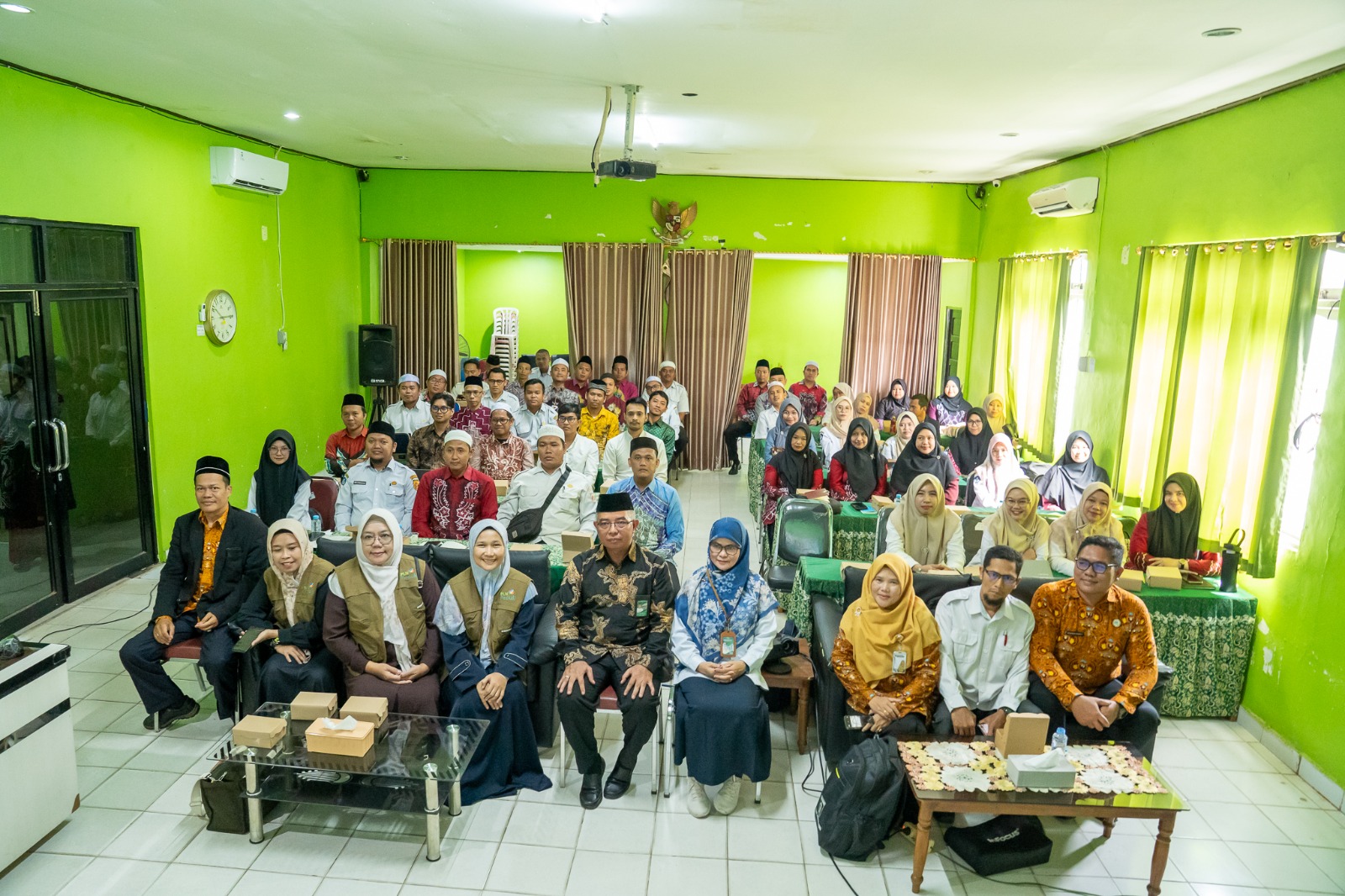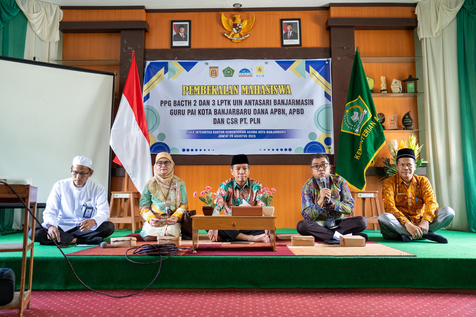 Peserta PPG dalam jabatan bagi Guru PAI Kota Banjarbaru setelah kegiatan pembekalan yang berlangsung di aula Kemenag Kota Banjarbaru. Foto: pln