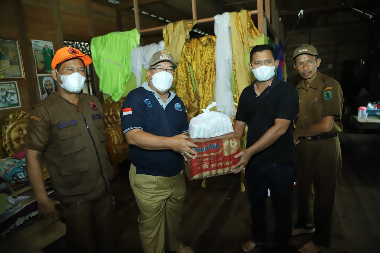 KANALKALIMANTAN.COM, AMUNTAI – Pelaksana Tugas (Plt) Bupati Hulu Sungai Utara (HSU) H Husairi Abdi, sambangi korban banjir sekaligus menyerahkan bantuan sembako di Desa Pandawanan Kecamatan Amuntai Utara, Senin (6/12/2021).
