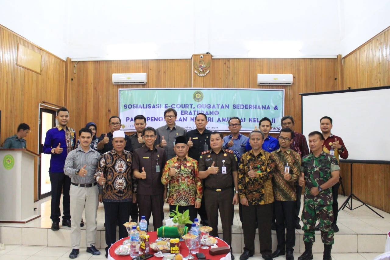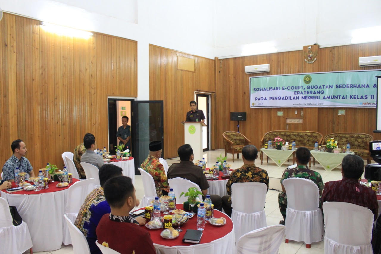 Hal tersebut disampaikan PN Amuntai saat sosialisasi E – Court kepada para perwakilan instansi dan pejabat di lingkungan Pemkab HSU, Kamis (24/10). Kegiatan tersebut dihadir Bupati HSU Abdul Wahid, Forkopimda, Wakil Ketua DPRD HSU, Ketua Pengadilan Agama HSU, Jajaran PN Amuntai, serta Pimpinan Perbankan HSU dan Advokat.