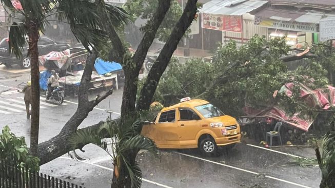 KANALKALIMANTAN.COM– Hujan deras disertai angin kencang menyebabkan pohon tumbang dan menimpa sejumlah kendaraan. Insiden itu mengakibatkan dua orang meninggal dunia.