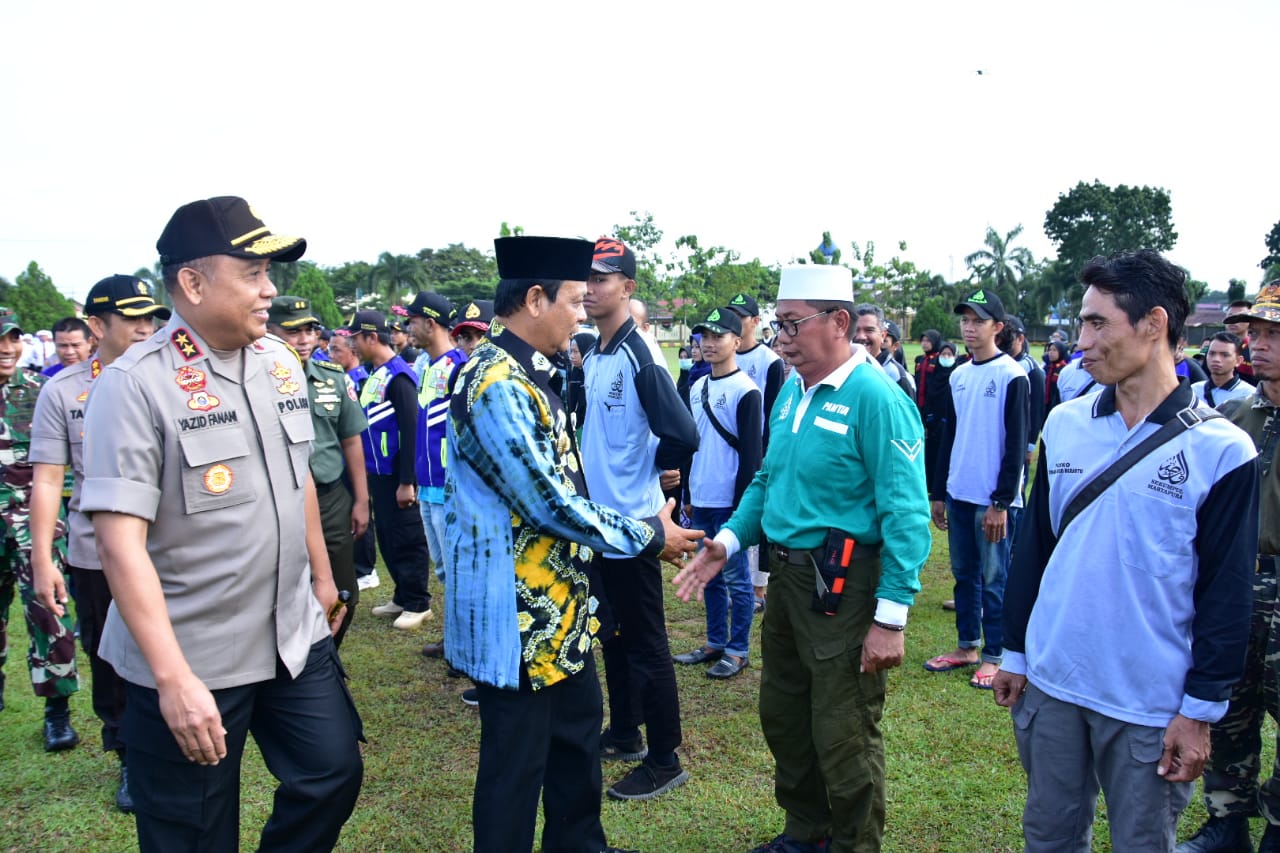 BANJARBARU, Polda Kalsel bersama jajaran serta instansi teknis, relawan haul, dan petugas medis menggelar apel kesiapan pengamanan Haul ke-14, Al Alimul Al Allamah Al Arif Billah KH Muhammad Zaini bin Abdul Ghani atau Guru Sekumpul. Apel persiapan berlangsung di Lapangan Mako Brimob Polda Kalsel, Jumat (8/3) pukul 08.00 Wita.