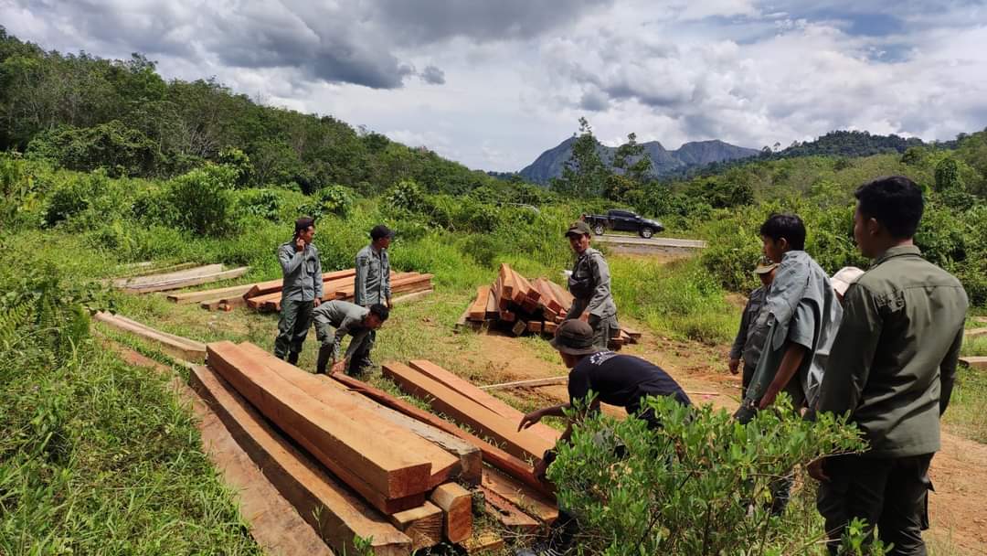 Saat Tim berpatroli menyisir akses jalan-jalan yang sering digunakan untuk pengangkutan di desa gunung raya kecamatan mantewe, tim menemukan beberapa tumpukan kayu olahan yang diduga hasil pembalakan liar dari kawasan hutan.