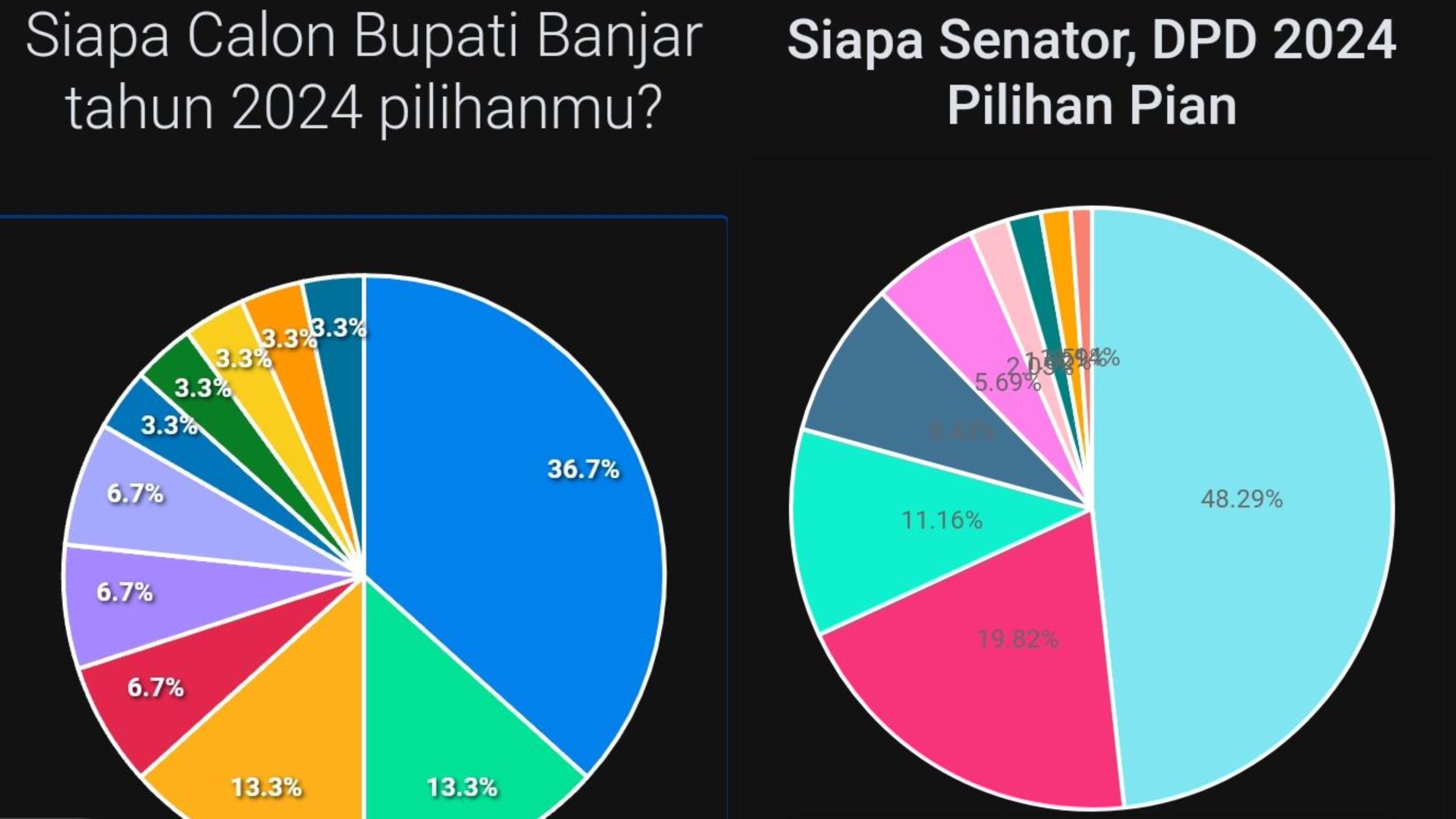 Untuk poling berjudul “Siapa senator DPD 2024 pilihan pian?” tersebut telah mendapatkan 237 suara dari khalayak. Posisi teratas diperoleh Muhammad Yamin dengan 48% suara, sementara posisi terakhir Habib Hamid Abdullah dengan 1,1% suara.