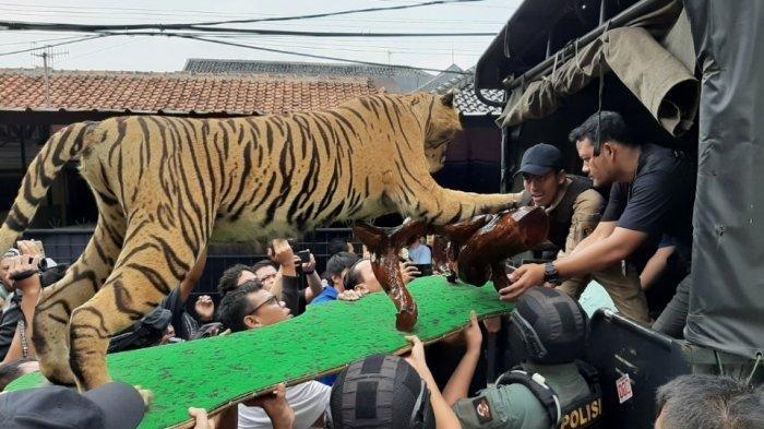 “Saat ini kami sudah mengamankan ada empat jenis hewan langka yang sudah dikeraskan yaitu Harimau Sumatera, kemudian Burung Cnderawasih, dan kemudian Rusa Bawean sebanyak 2 ekor,” kata Kapolres Metro Jakarta Selatan Kombes Bastoni kepada wartawan usai penggeledahan.