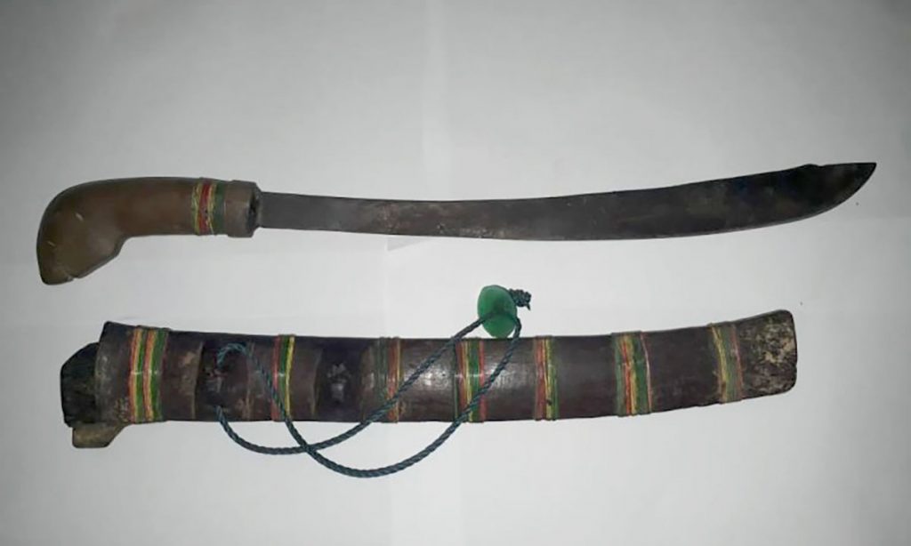 “Barang bukti yang berhasil diamankan dari pelaku berupa satu bilah senjata tajam jenis parang dengan panjang besi 36 cm, hulu terbuat dari kayu warna cokelat dengan panjang 13 cm lengkap dengan kompangnya terbuat dari kayu warna cokelat yang ada tali warna biru,†jelas Kapolres HST.