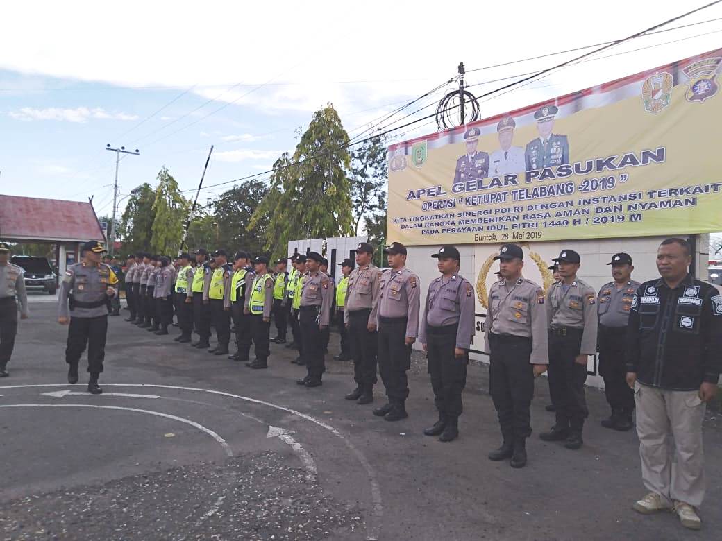BUNTOK, Polres Barito Selatan (Barsel), melaksanakan apel gelar pasukan operasi ketupat telabang 2019, di Mapolres lama, Selasa (28/5). Kapolres AKBP Wahid Kurniawan mengatakan, untuk pengamanan lebaran nanti telah siapkan lima pos pengamanan.