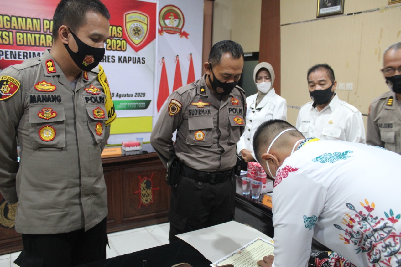 KANALKALIMANTAN. COM, KUALA KAPUAS – Polres Kapuas menggelar penandatanganan pakta integritas di aula Polres Kapuas, Jl Pemuda, Rabu (19/8/2020). Hal ini dilakukan serangkaian penerimaan calon anggota Polri tahun anggaran 2020.
