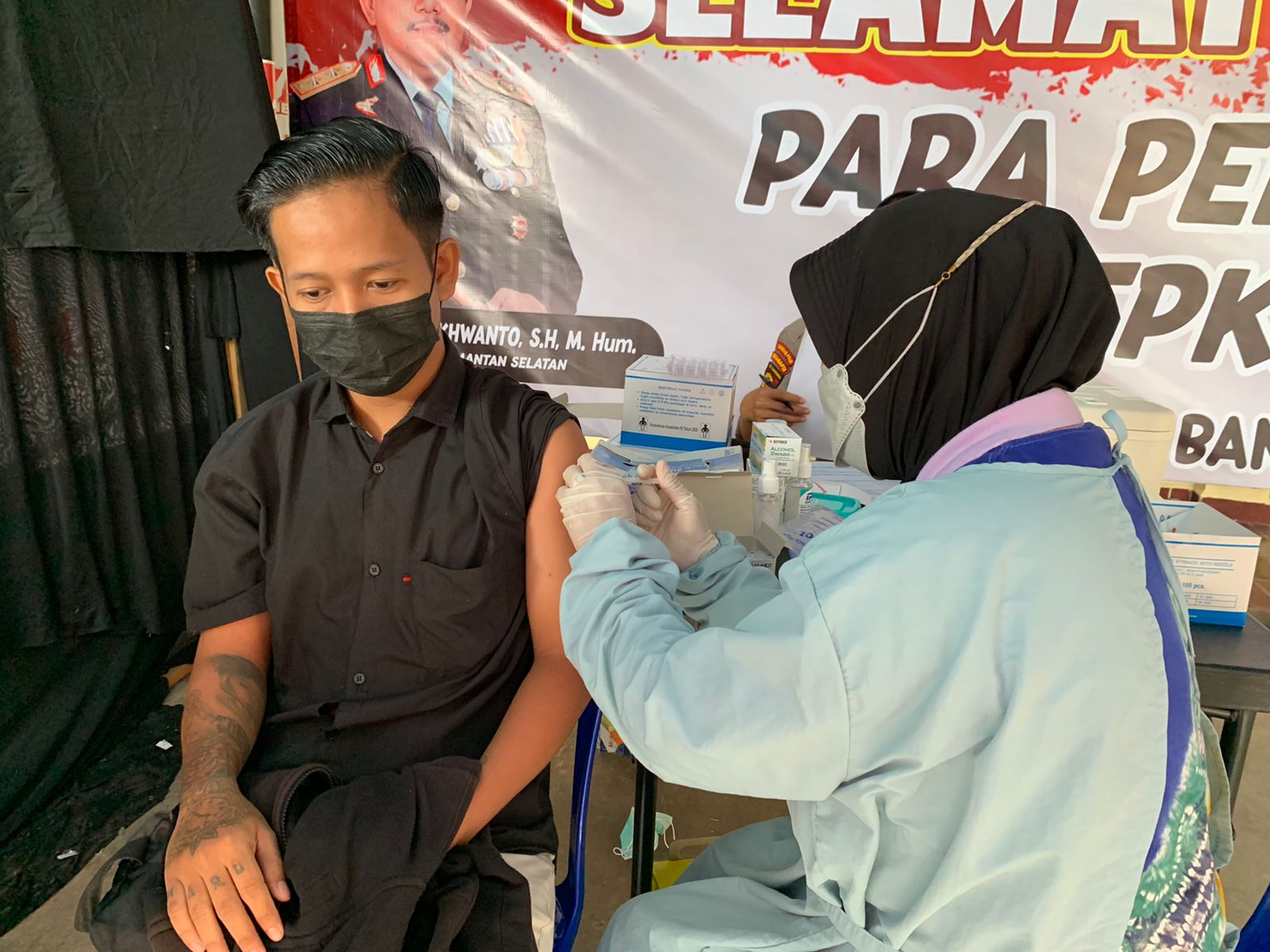 KANALKALIMANTAN.COM, BANJARMASIN – Polresta Banjarmasin terus bergerak membantu menyukseskan program pemerintah untuk menggenjot cakupan vaksinasi Covid-19.