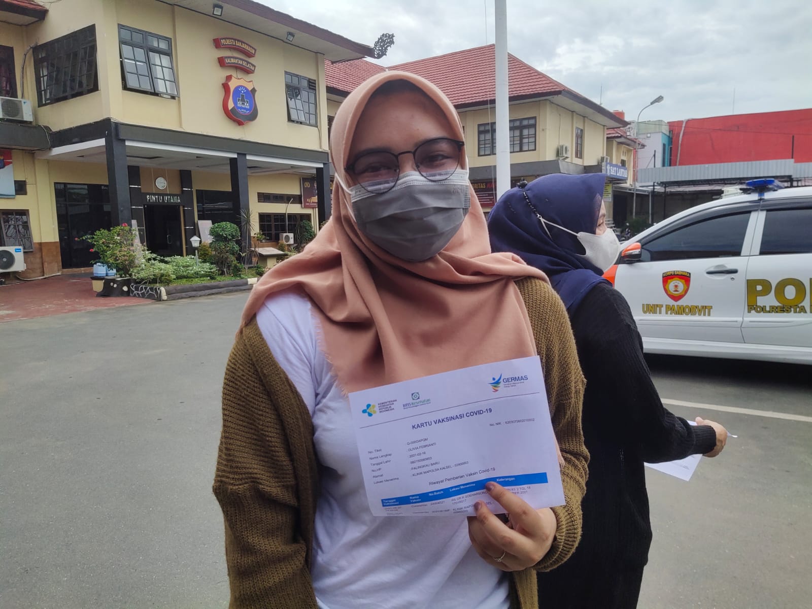 Olivia Febrianti (20), warga Kapuas, salah satu peserta vaksinasi mengungkapkan, pelayanan di gerai vaksin presisi Polresta Banjarmasin cukup lancar dan teratur karena sudah ditentukan kuotanya.
