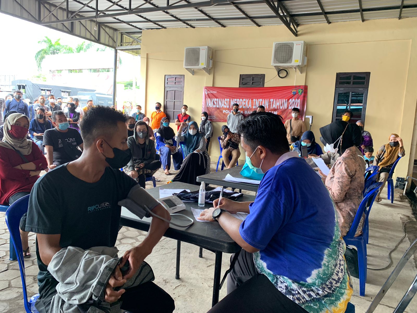 Warga yang ikut vaksin di Polresta Banjarmasin, Jumat (1/10/2021). Foto: humaspolrestabanjarmasin