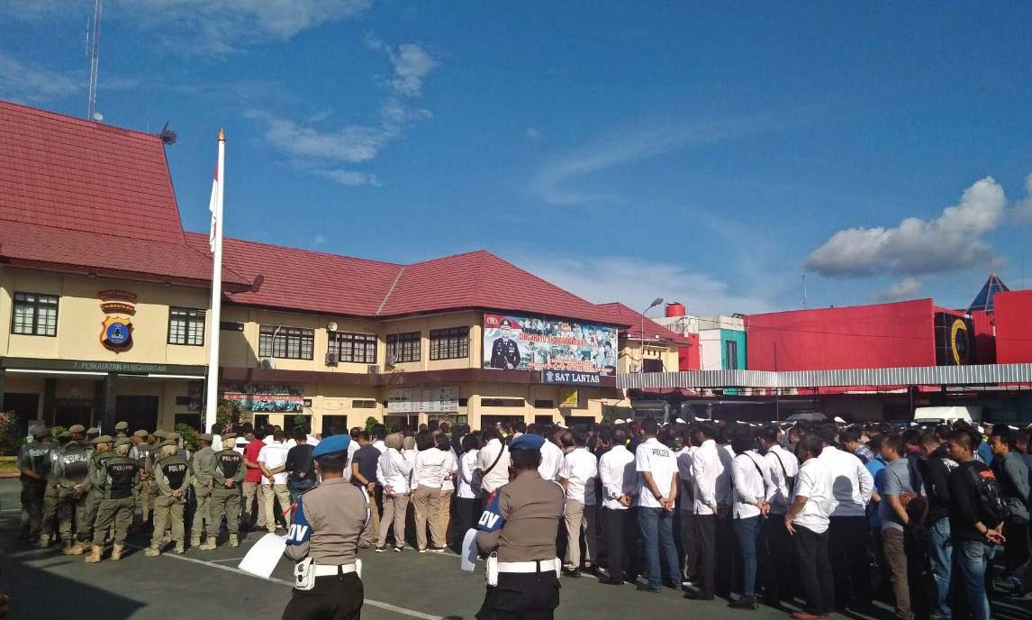 BANJARMASIN, Satuan Petugas (Satgas) gabungan melakukan apel besar persiapan pengamanan malam tahun baru 2020 di Mapolresta Banjarmasin, Selasa (31/12) sore.
