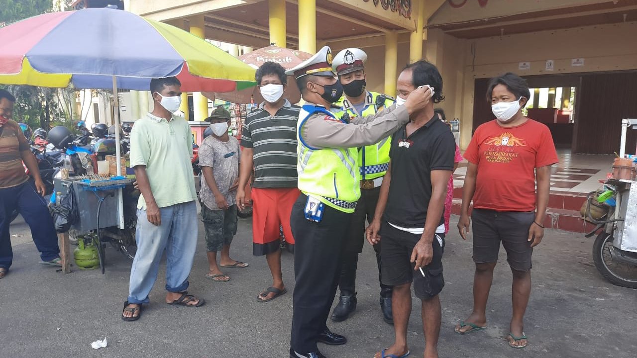 Ipda Ali menjelaskan sosialisasi kali ini dilakukan dengan menyampaikan himbauan 3M memakai masker, mencuci tangan dan menjaga jarak kepada pedagang kaki lima dan masyarakat yang tengah beraktivitas.