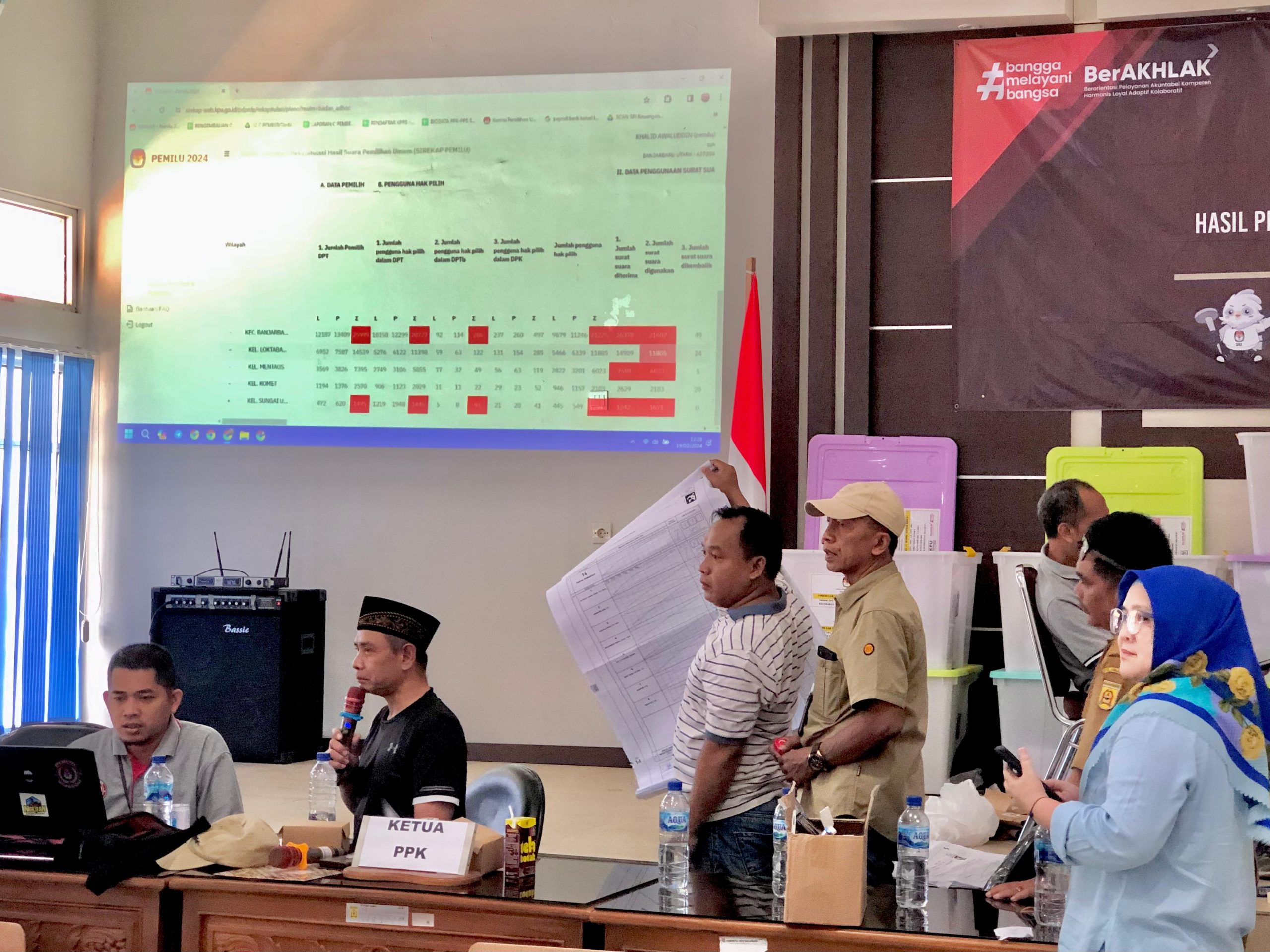 Seperti yang terpantau Kanalkalimantan.com, Senin (19/2/2024) siang, Panitia Pemilihan Kecamatan (PPK) Banjarbaru Utara sedang menyelesaikan rekapitulasi suara untuk TPS di Kelurahan Loktabat Utara.