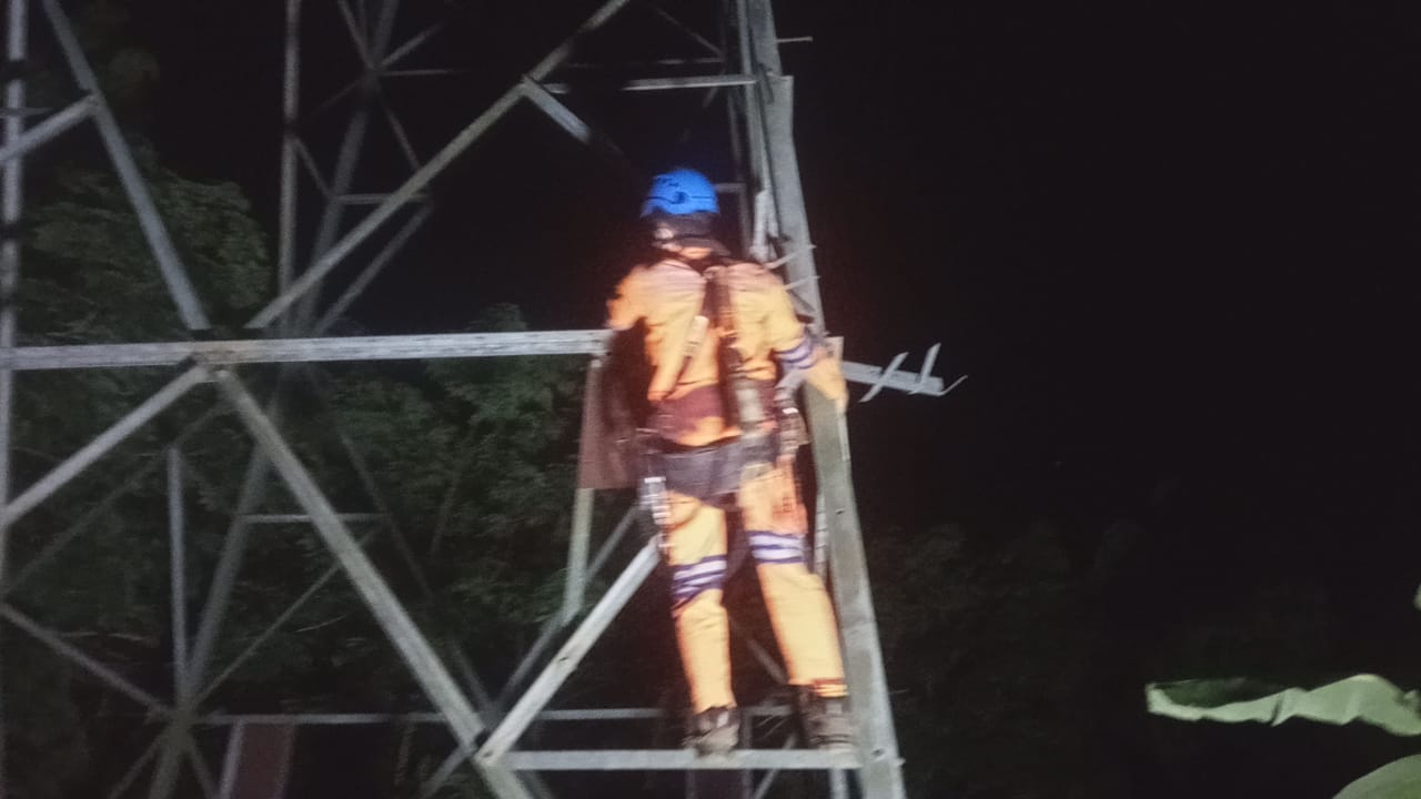 Ada sekitar tiga petugas dari Basarnas yang menjemput pria tersebut ke atas tower. Dengan menggunakan peralatan yang safety.