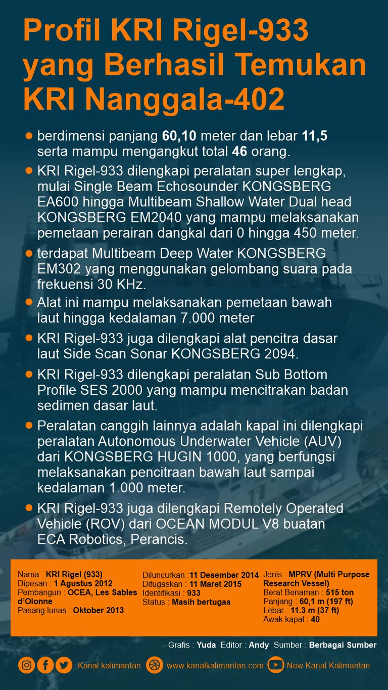 Dibalik duka mendalam ini terselip satu prestasi yang juga ditorehkan satu armada kapal milik TNI AL, adalah KRI Rigel-933 yang pertama kali berhasil menemukan keberadaan KRI Nanggala-402.
