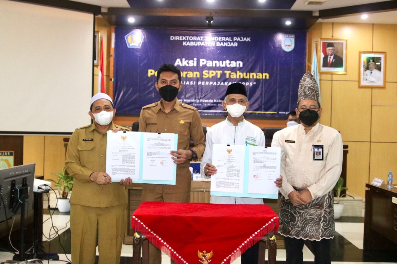 Penandatanganan nota kesepakatan dilakukan Bupati Banjar H Saidi Mansyur dengan Ketua Baznas Banjar Drs H Yusran Yaqub disaksikan Wakil Bupati Banjar Habib Idrus Al Habsyie dan Sekda Banjar HM Hilman, di Aula Barakat Martapura, Senin (14/3/2022).