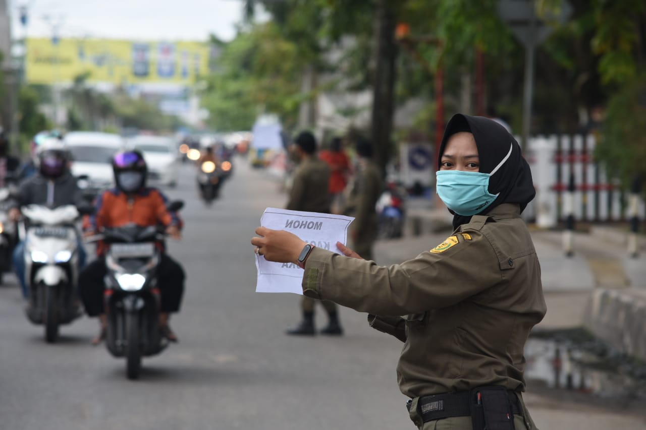 Petugas melaksanakan PSBB di kota Banjarmasin. foto: fikri