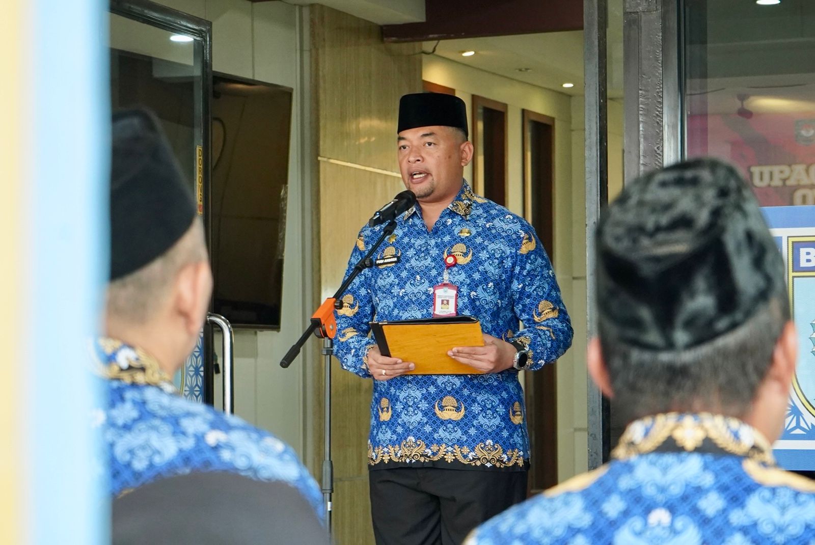 Bertindak sebagai pembina upacara, Sekretaris Daerah Kabupaten Banjar H Yudi Andrea membacakan sambutan Menteri Dalam Negeri, Muhammad Tito Karnavian. (Kanalkalimantan.com/dkispbanjar)