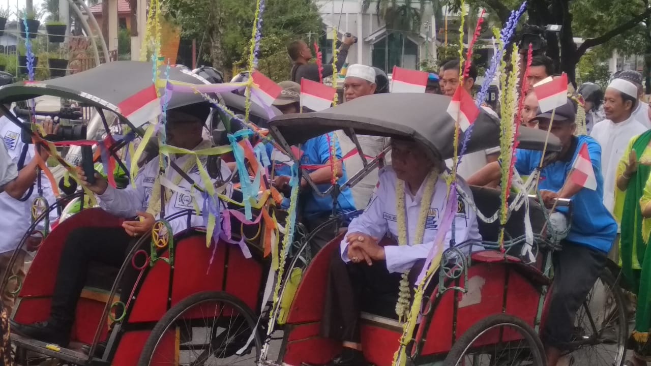 Diiringi ribuan pendukung ditambah iring-iringan pawai, rombongan berangkat dari depan Mahligai Pancasila, jalan Soeprapto Banjarmasin, pukul 09:00 Wita. Tak lama, pasangan bakal calon perseorangan ini naik becak dari jalan Hasan Basry depan Gedung Sultan Suriansyah menuju bundaran Kayutangi.