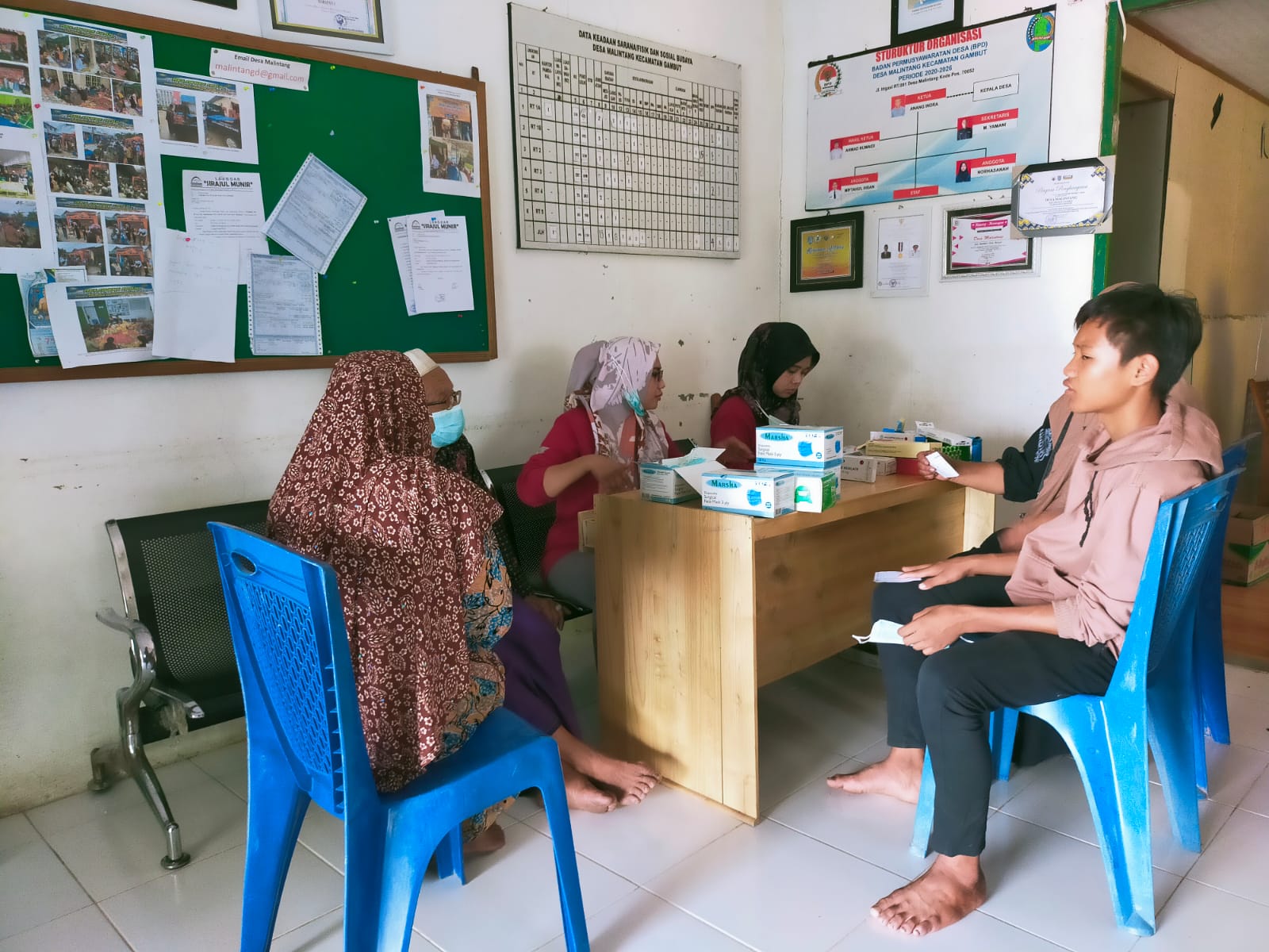 Siti Aminah (41) warga Handil Jawa, Guntung Ujung, Kecamatan Gambut mengantarkan anaknya Ahmad Tedy Oktaviano (14) berobat ke kantor Desa Malintang karena adanya pengobatan gratis. Anaknya sempat mengalami sesak dada, pusing hingga pingsan saat di sekolah, ia menerima telepon dari pihak guru SMPN 2 Gambut, tempat anaknya bersekolah mengatakan anaknya mengalami pingsan tak sadarkan diri.
