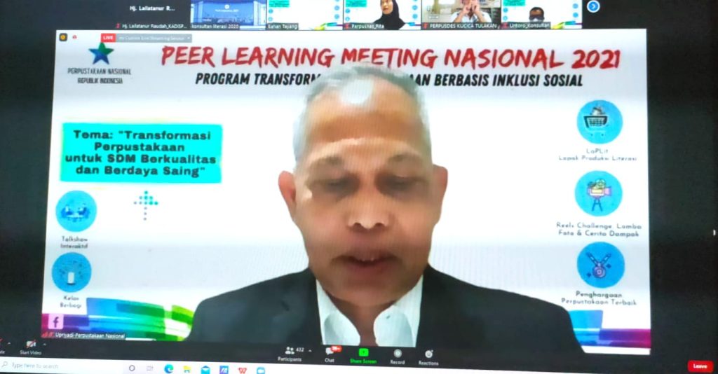 Peer Learning Meeting (PLM) Nasional 2021 dengan bertema “Transformasi Perpustakaan untuk SDM Berkualitas dan berdaya saing”, 1- 2 Desember 2021 secara virtual.