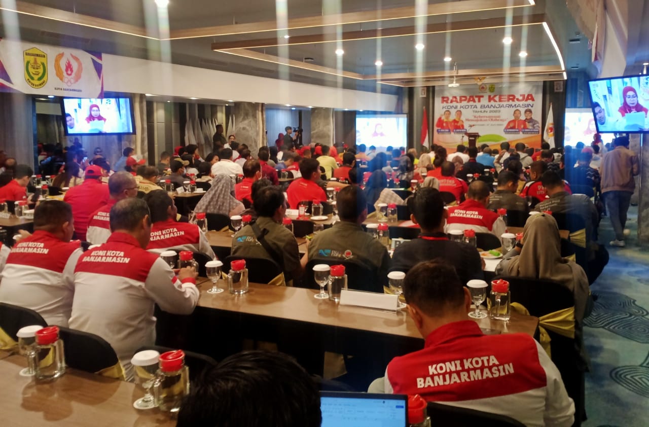 Rapat Kerja (Raker) Komite Olahraga Nasional Indonesia (KONI) Kota Banjarmasin yang berlangsung di Hotel Harper, Sabtu (17/6/2023) siang. Foto: rizki
