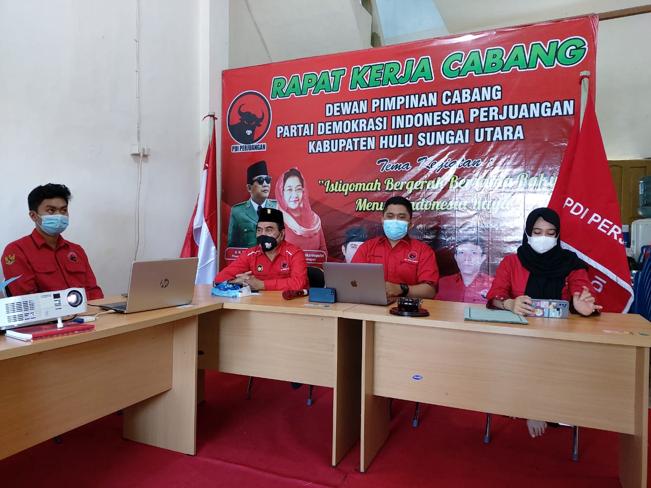 KANALKALIMANTAN.COM, AMUNTAI – Dewan Pimpinan Cabang (DPC) PDI Perjuangan Kabupaten Hulu Sungai Utara (HSU) menggelar Rapat Kerja Cabang (Rakercab) tahun 2021, Minggu (18/4/2021).
