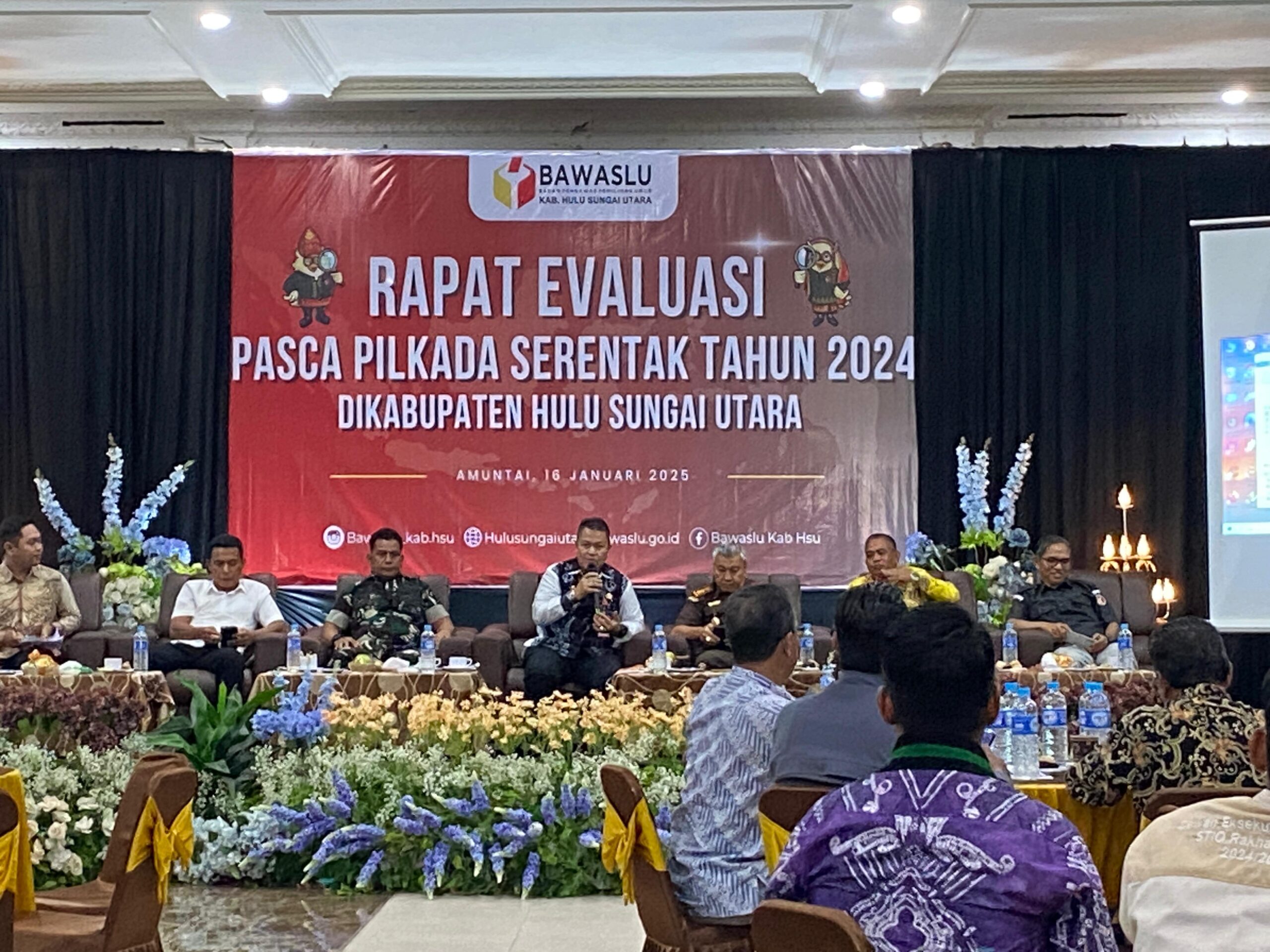 Hal itu disampaikannya saat menghadiri rapat evaluasi pasca Pemilihan Kepala Daerah (Pilkada) Serentak tahun 2024 di Kabupaten HSU yang digelar Bawaslu HSU bersama stakeholder terkait Ketua dan Anggota Panwaslu Kecamatan se- Kabupaten HSU di gedung Aneka Guna Amuntai, Kamis (16/1/2025).