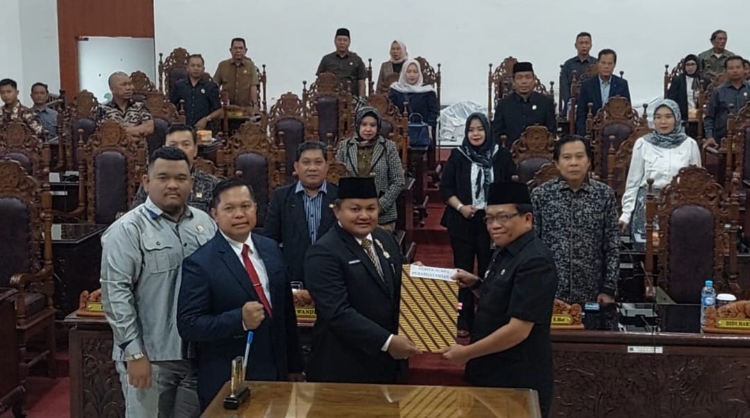 Penandatanganan pengesahan Raperda APBD Kabupaten Kapuas tahun anggaran 2024 oleh pimpinan DPRD Kapuas dan Pj Bupati Kapuas.
