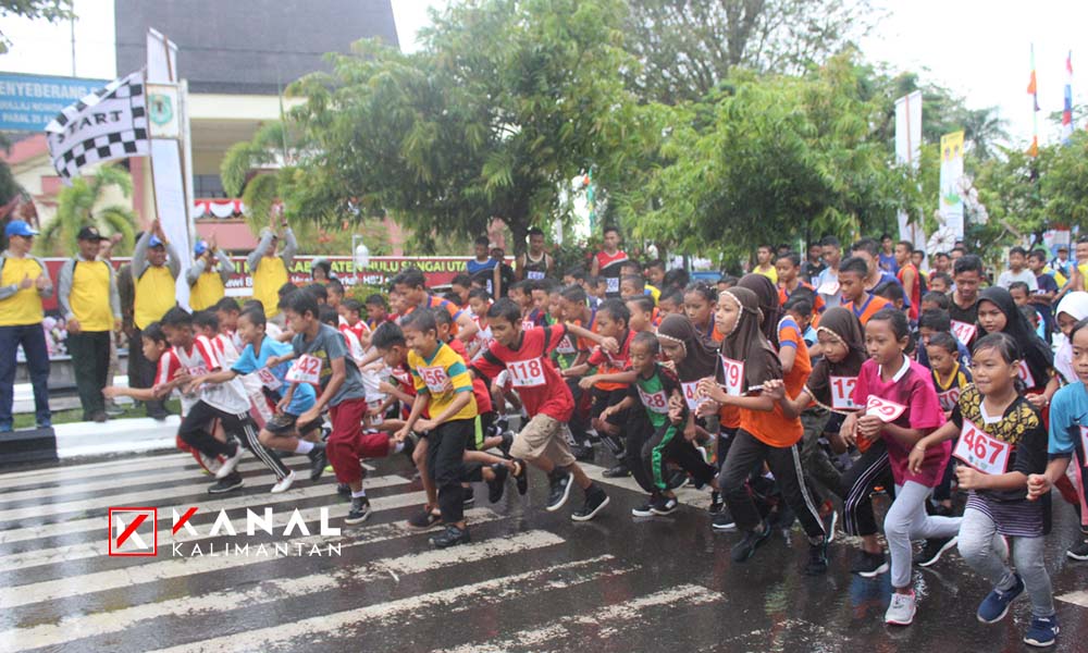 Lomba lari menempuh rute seputar kota Amuntai yakni 3 Kilometer untuk tingkat pelajar SD/sederajat dan 5 Km untuk tingkat SLTP dan SLTA/sederajat, diikuti pelajar berbagai sekolah se HSU. Lomba dibuka Bupati HSU H Abdul Wahid HK di dampingi kepala Disporapar H Fajeri Ripani  dengan mengambil Start dan Finishnya di Jalan Norman Umar, tepat di depan Mesjid Raya At Taqwa Amuntai dan Aula KH Dr Idham Chalid.