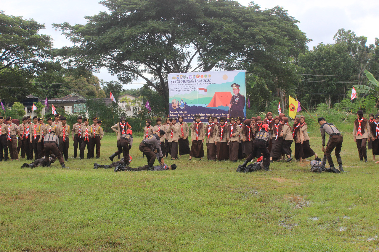 KANALKALIMANTAN.COM, AMUNTAI – Ratusan pelajar anggota Pramuka yang berasal dari SMA sederajat ikuti perkemahan Bakti Saka Bhayangkara Tingkat Cabang (Pertikarcab) Hulu Sungai Utara 2020, di Bumi Perkemahan Kecamatan Amuntai Utara.