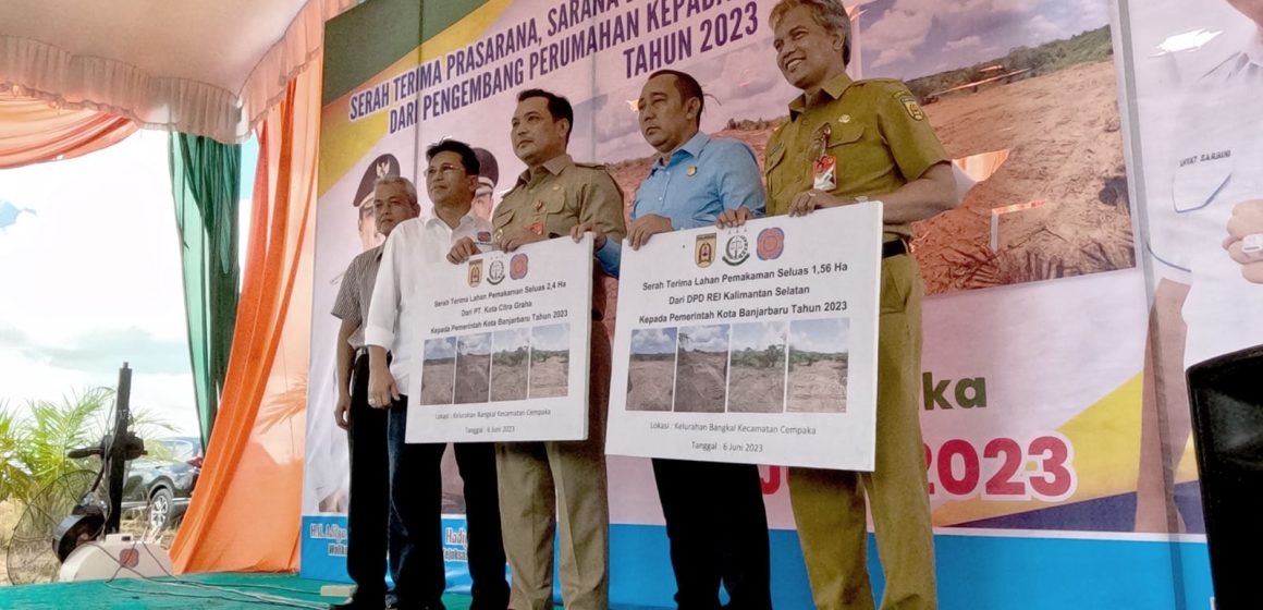 KANALKALIMANTAN.COM, BANJARBARU – Lahan permakaman seluas 4 hektare dari DPD REI Kalsel diserahkan kepada Pemerintah Kota Banjarbaru, Selasa (6/6/2023).