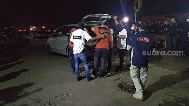Polisi kemudian membuka satu per satu pintu mobil dan menginstruksikan empat orang laskar FPI untuk turun tiarap menyerah.
