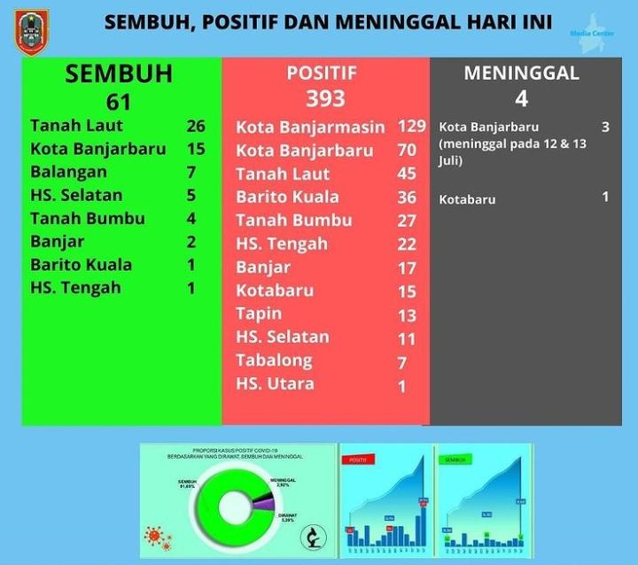 Dikabarkan pasien yang meninggal berjumlah 4 orang berasal dari Kota Banjarbaru sejumlah 3 orang (meninggal pada tanggal 12 dan 13 Juli) dan Kotabaru 1 orang.