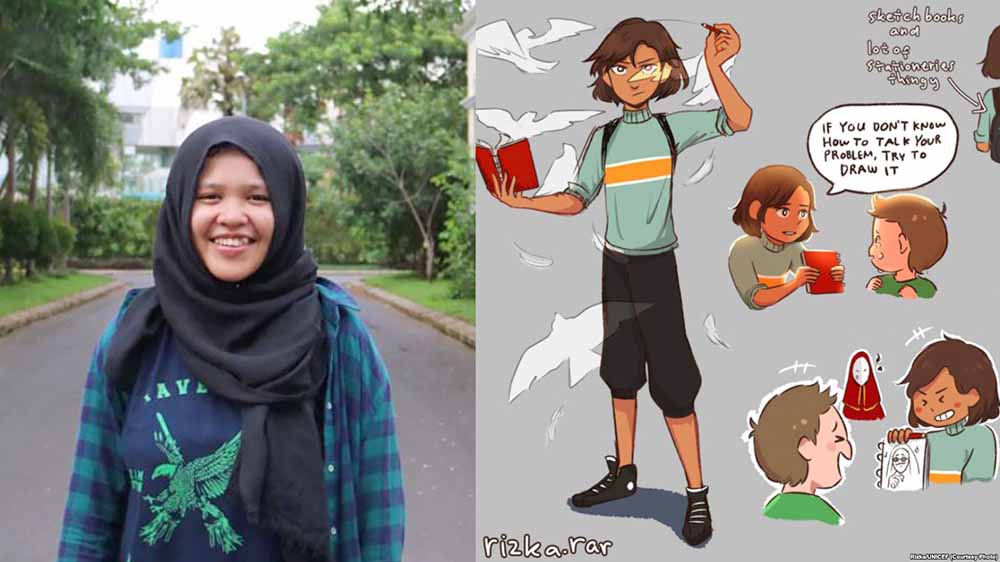 Pengalaman dirisak inilah yang mendorong Rizka Raisa Fatimah Ramli, remaja 17 tahun asal Makassar, Sulawesi Selatan, terus menggambar.