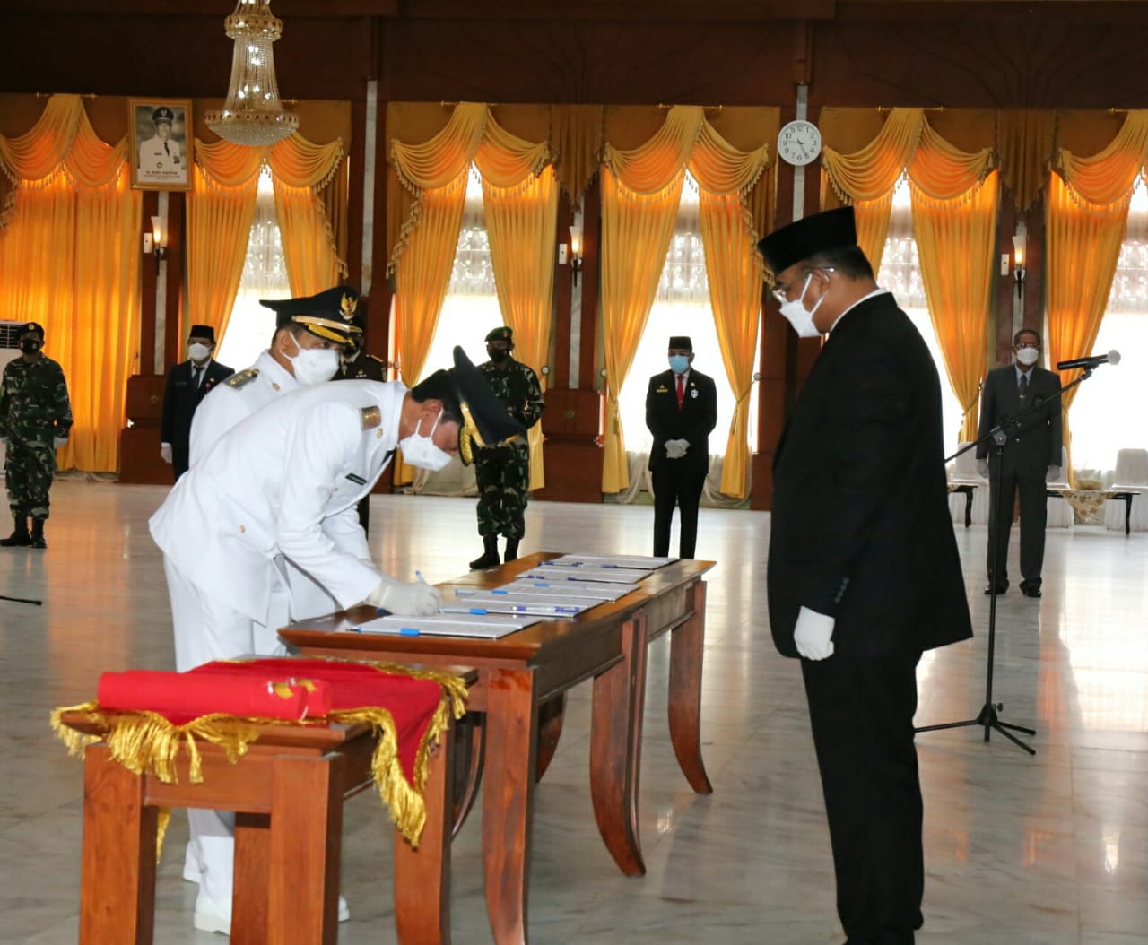 H Saidi Mansyur dan Said Idrus Al Habsyi menandatangani SK Pelantikan. Begitu pula 4 pasang kepala daerah lainnya di Kalsel.