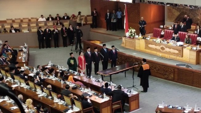 Setelah anggota dewan setuju, mereka diambil sumpah janji jabatan yang dipimpin oleh Ketua Mahkamah Agung (MA) Hatta Ali serta melakukan tanda tangan berita acara.
