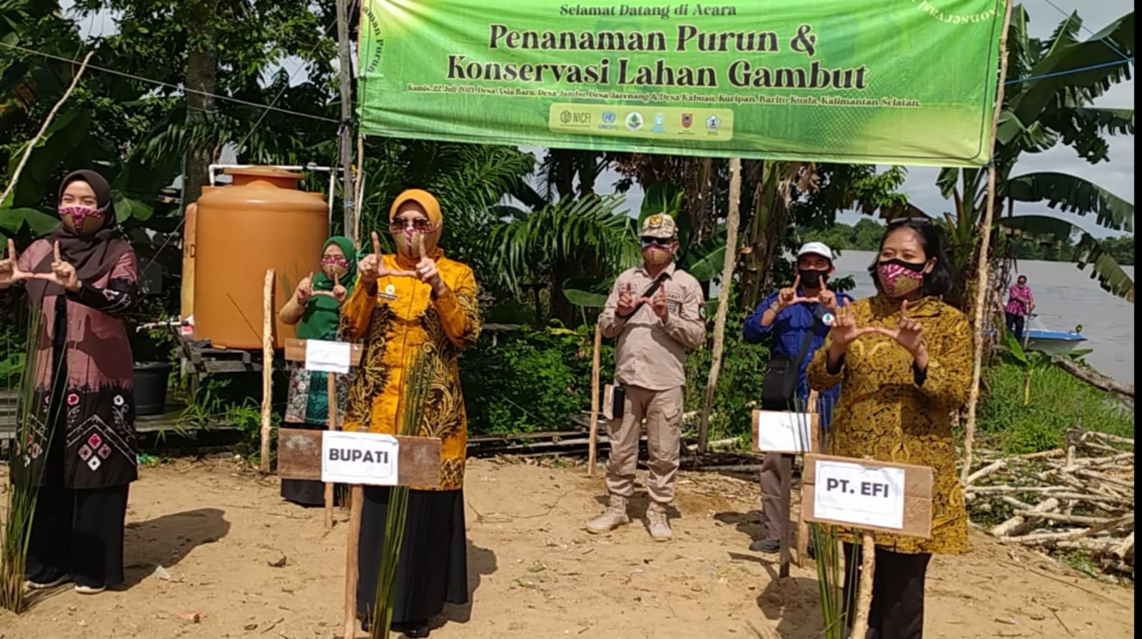 Bupati Barito Kuala Hj Noormiliyani AS dan Eco Fesyen Indonesia (EFI) bersama masyarakat melakukan penanaman bibit purun di lahan 4 hektare, Kamis (22/7/2021). Foto: rdy