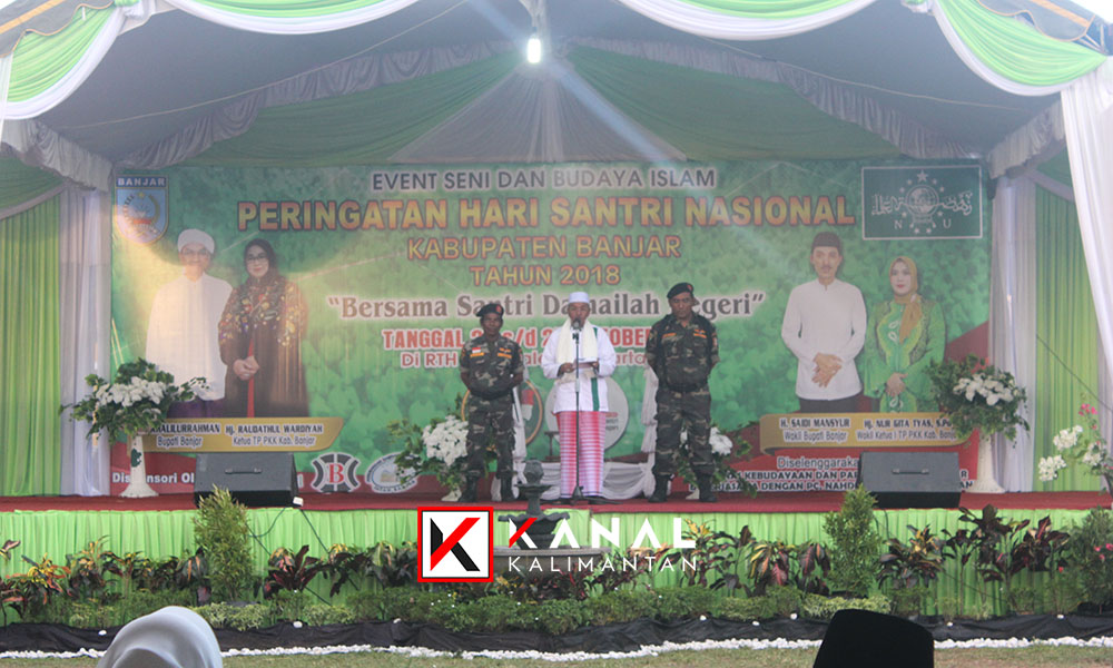 Bupati Kabupaten Banjar KH. Khalilurrahman dalam amanatnya menyampaikan, Hari Santri Nasional merupakan peristiwa yang sangat penting dalam perjalanan sejarah Indonesia. Untuk itu pada kesempatan yang membahagiakan ini bisa menjadi momentum untuk memantapkan dan mewujudkan kemandirian santri menuju NKRI hebat.